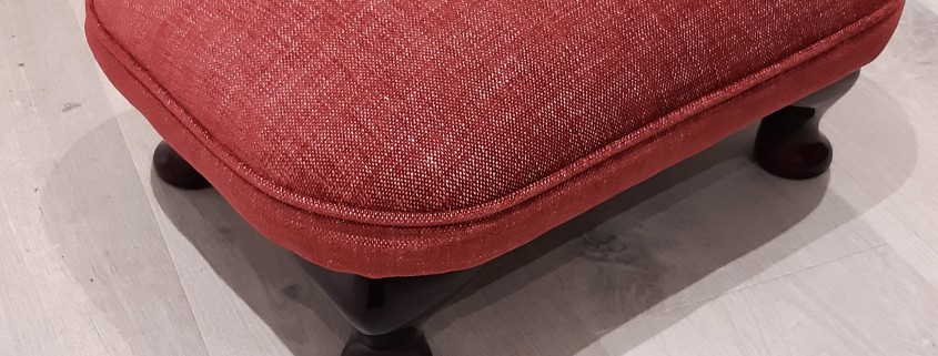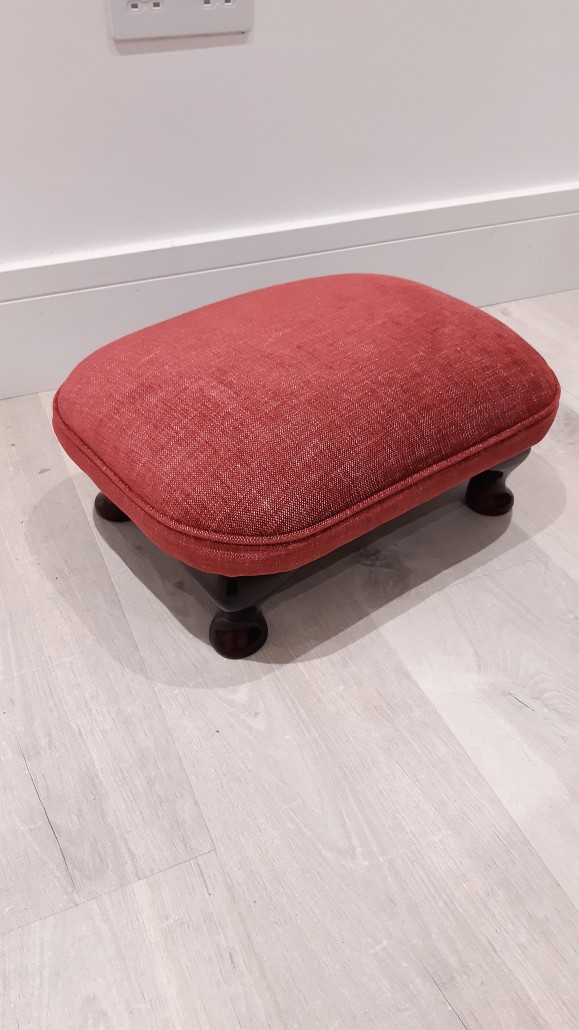 Custom made footstool upholstered with Fryetts Nirvana in Rose.